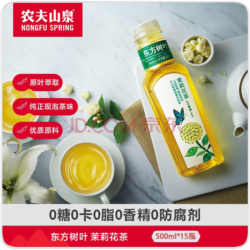 农夫山泉东方树叶茉莉花茶0糖0脂0卡无糖饮料500ml*15瓶无糖茉莉花茶 东方树叶茉莉花茶500ml*5瓶