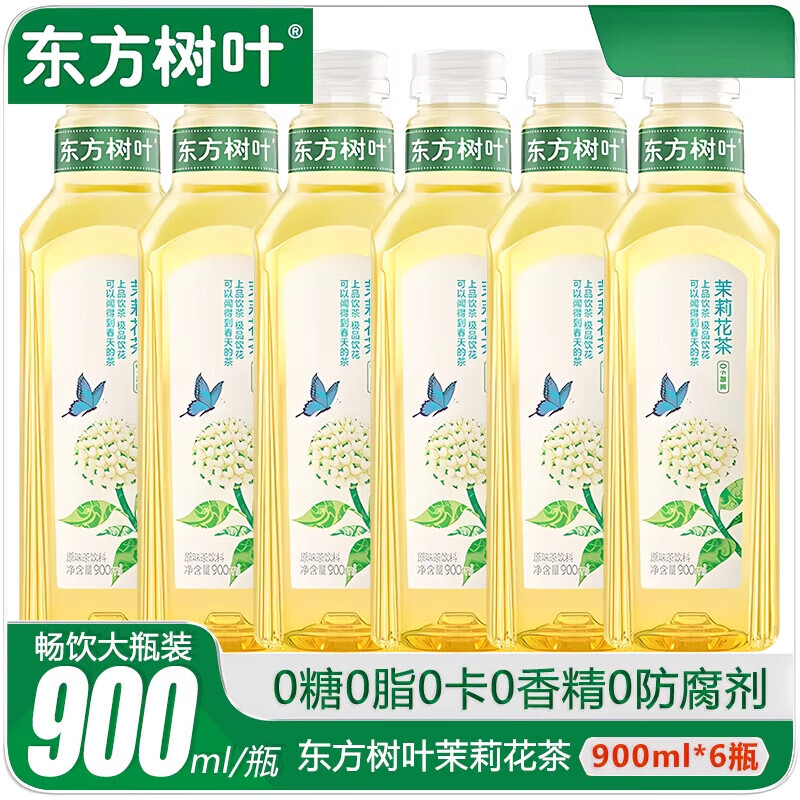 农夫山泉东方树叶 900ml大瓶 青柑普洱黑乌龙茶茉莉花茶无糖茶饮料 东方树叶茉莉花茶900ml*6瓶