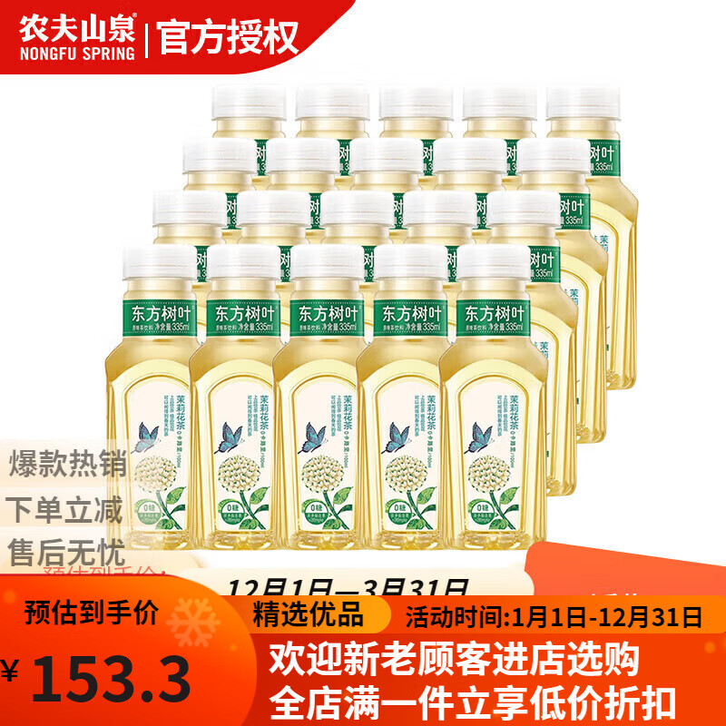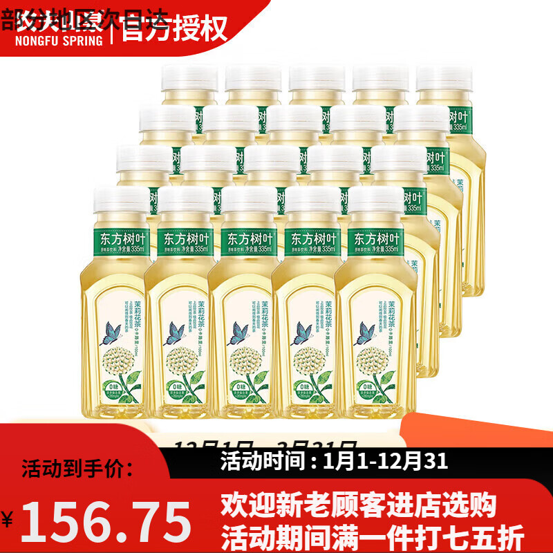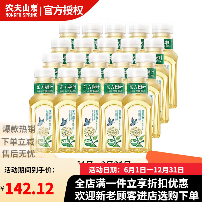 农夫山泉东方树叶茉莉花茶335ml*24瓶无糖茶饮料0糖0脂0卡整箱装