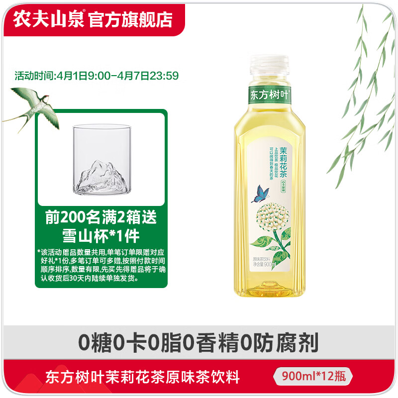 农夫山泉东方树叶茉莉花茶900ml*12瓶无糖茶饮料0糖0脂0卡整箱装