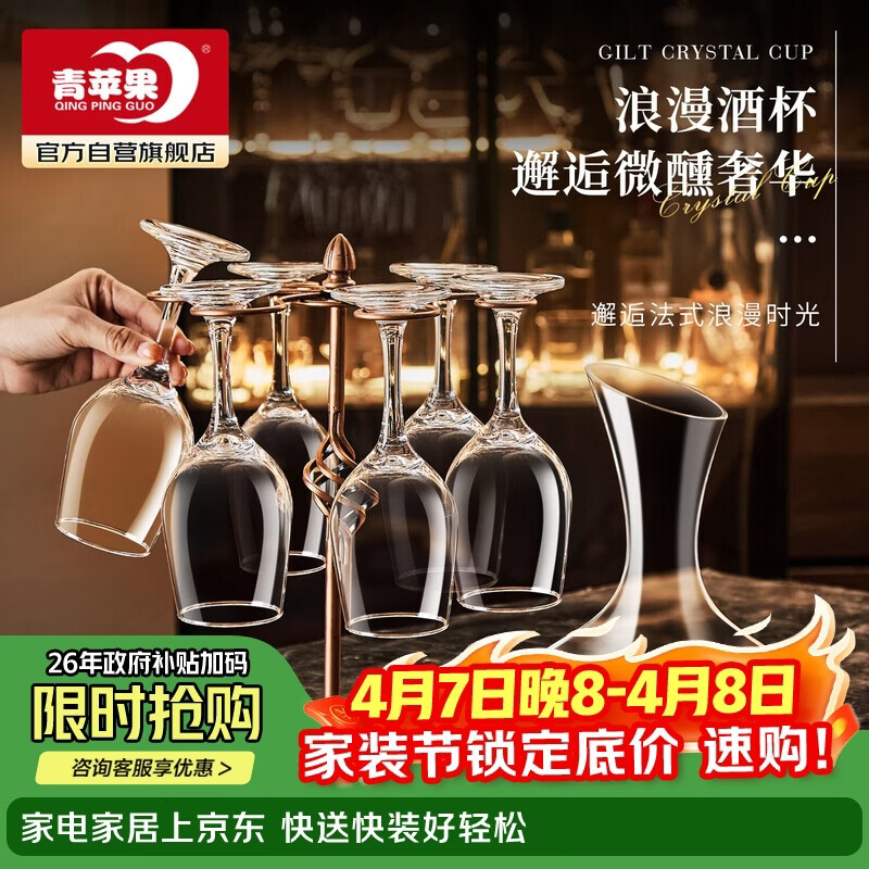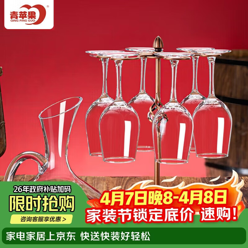 青苹果 红酒杯套装葡萄酒杯6只+醒酒器+开瓶器+轻奢古典酒杯架