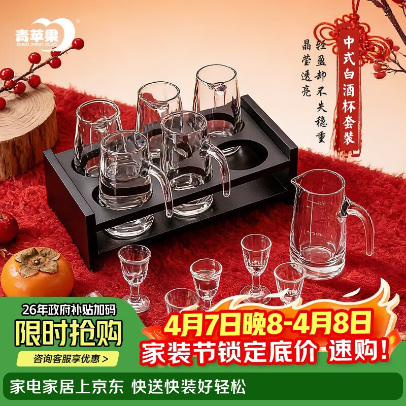 青苹果白酒杯分酒器套装 加厚玻璃一口杯品鉴小酒杯烈酒杯二两杯分酒壶