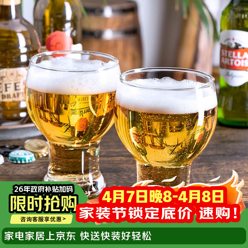 京东京造 啤酒杯 扎啤玻璃杯高端精酿北欧风酒杯收腰杯子415ml 两只装