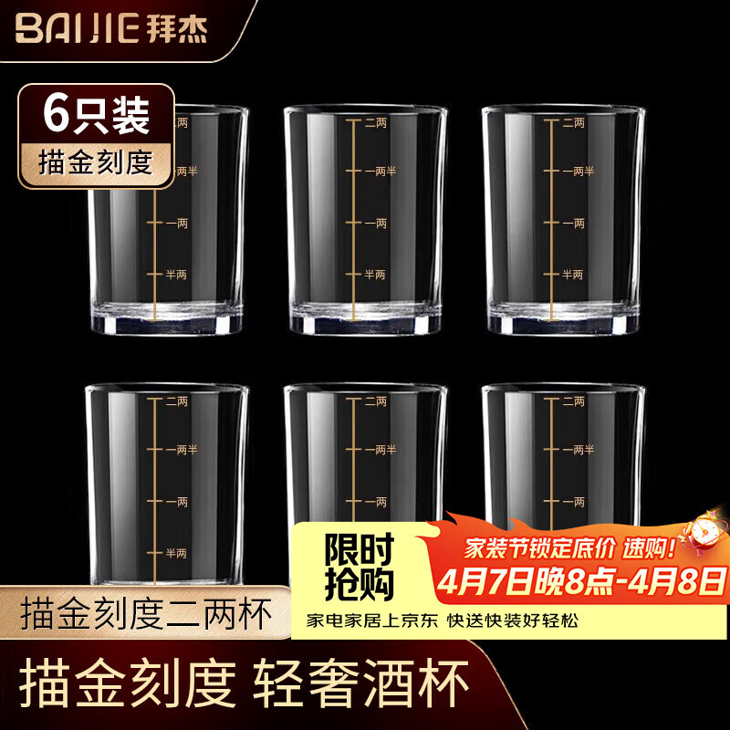 拜杰白酒杯套装二两描金带刻度高档酒具酒杯玻璃酒杯套装家用白酒杯