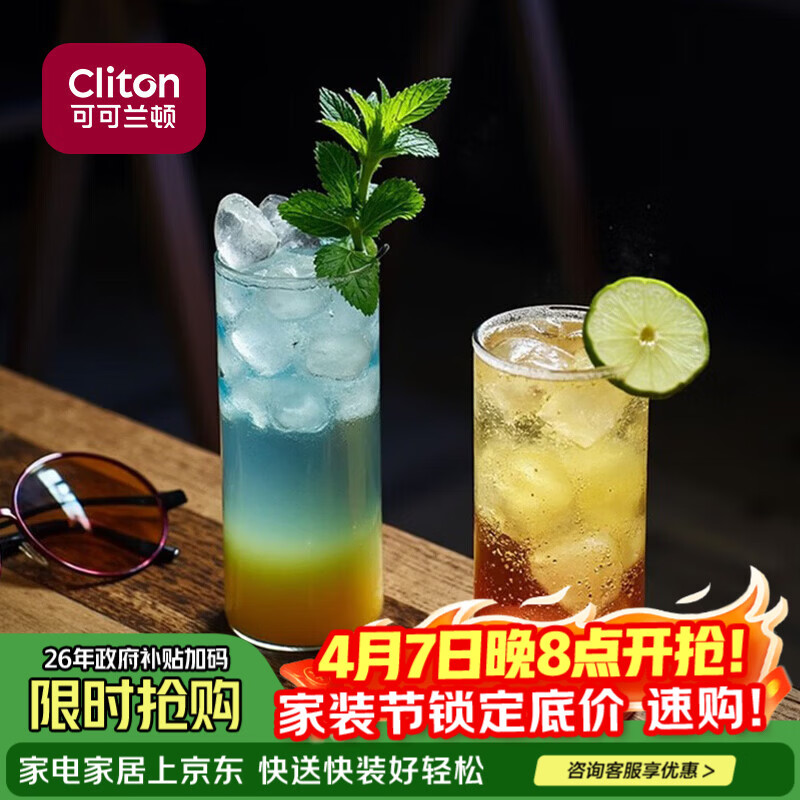 CLITON日式柯林杯酒吧直身长饮玻璃杯调酒杯长岛冰茶鸡尾酒杯290ml2只